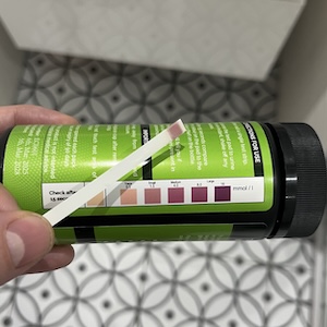 Every morning I get up and take a ketosis test. This is a urine test for the presence of ketones in the system.